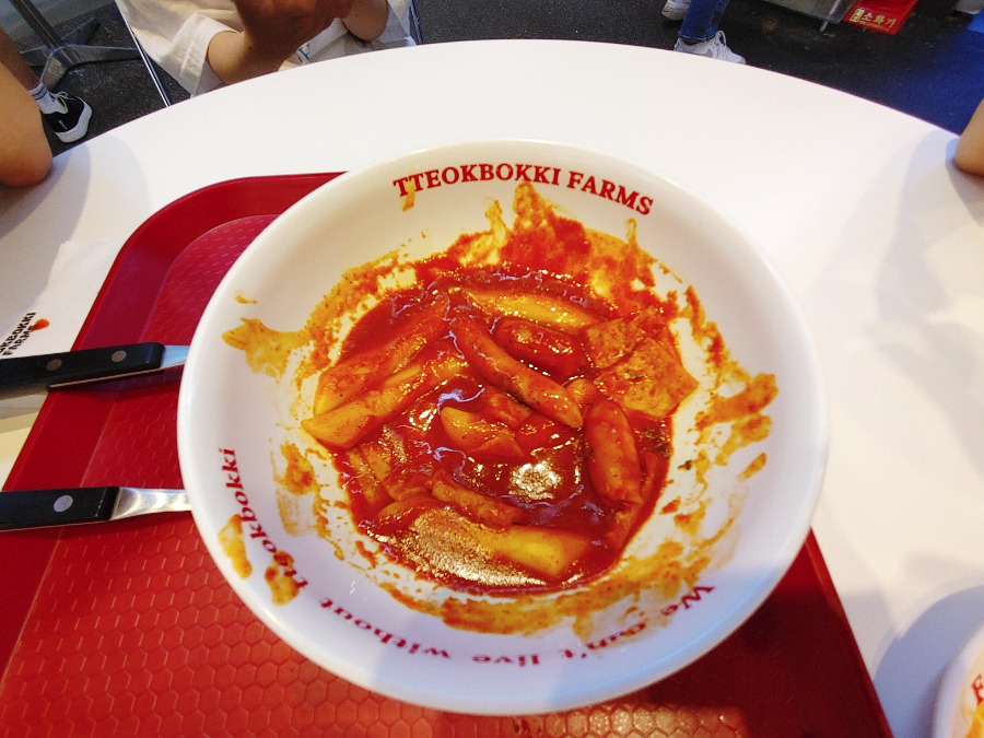 점심시간이 한참 지나서인지 배가 고파서 3층에 있는 떡볶이 농장에서 간단한 식사를 했다. 요즘 K-Food가 인기를 끌면서 한국을 찾는 관광객들이 떡볶이를 먹어보고 싶어 하는 것 같다. 우리 가족은 맵찔이라서 떡볶이 순한 맛을 시켰음에도 불구하고 일반 매운맛 수준이었다. 맵기 정도를 조금 낮추면 좋을 것 같다. 덕분에 물이랑 음료수 엄청 마셨음.
