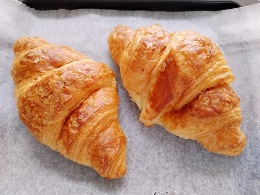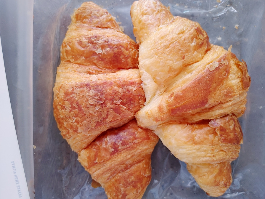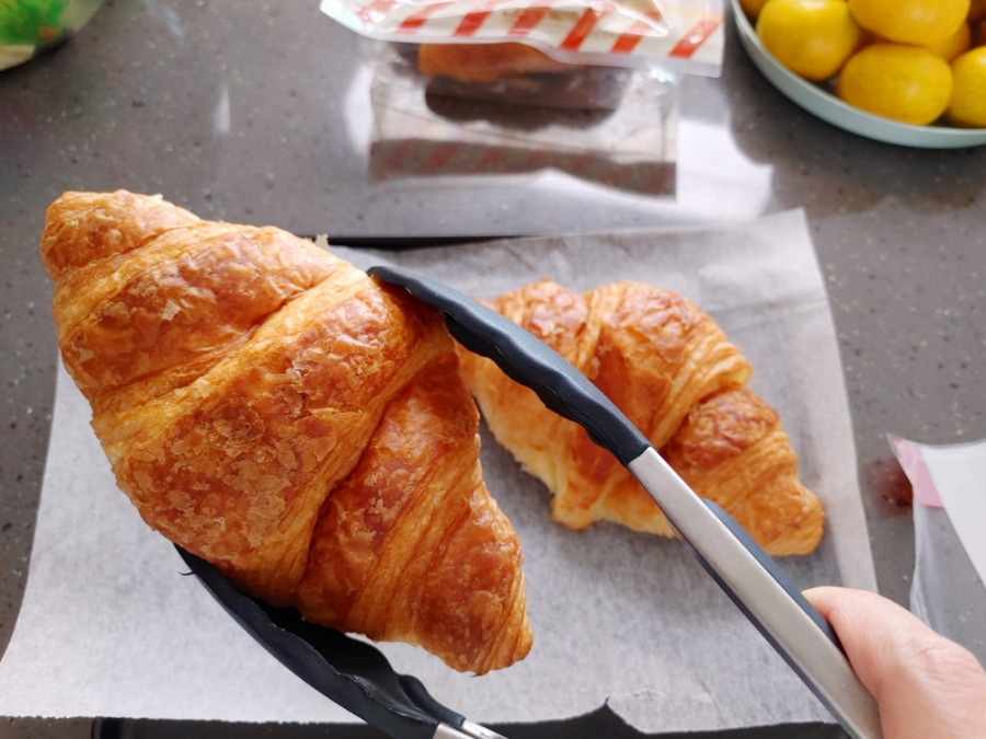 겉바속촉한 정통 프렌치 크루아상 완성, 햄, 치즈를 넣어 샌드위치로, 누텔라나 쨈을 발라 먹으면 든든한 한 끼로 충분합니다. 우유나 주스, 커피를 곁들어 드시면 더 맛있어요.