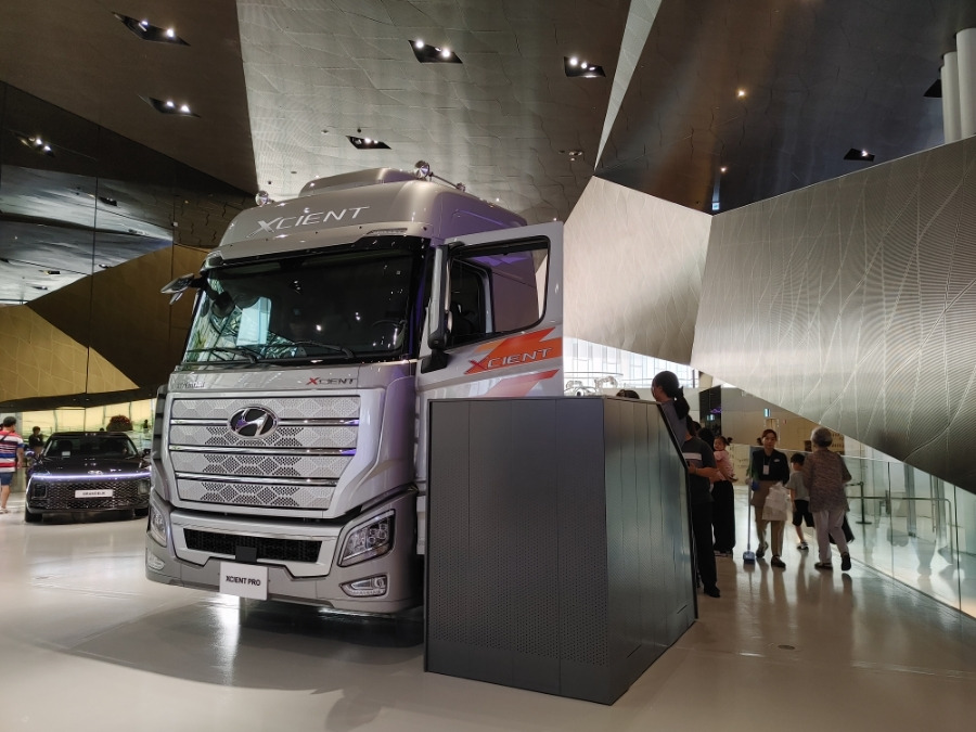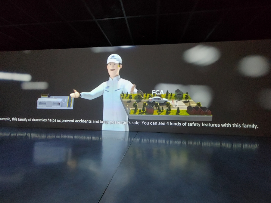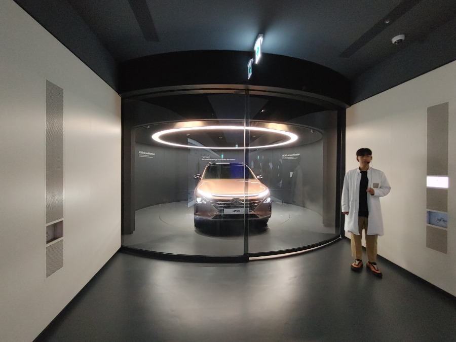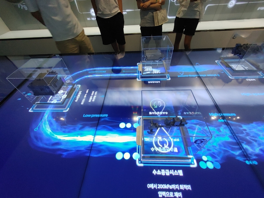 현대 넥쏘는 수소와 산소의 결합으로 에너지와 물을 발생시키는 수소전기차다. 넥쏘의 내부에서 수소가 어떤 과정을 통해 전기를 발생시키는지 모니터를 보면서 가이드의 설명을 들을 수 있다.