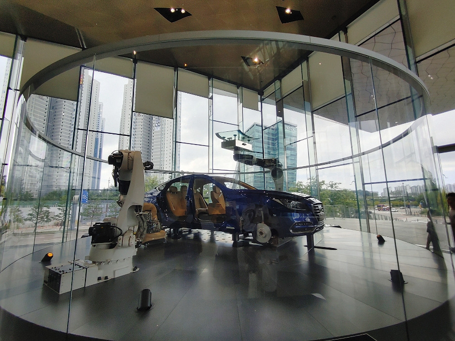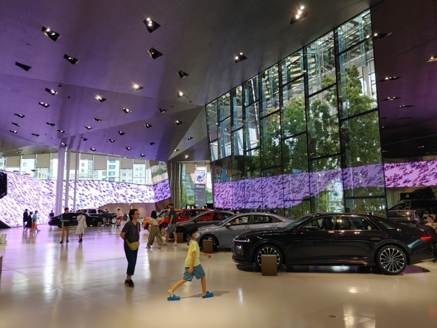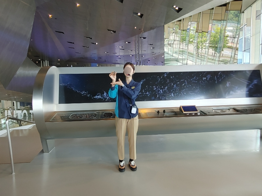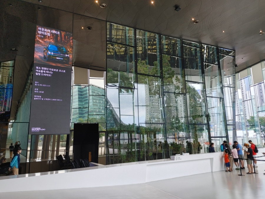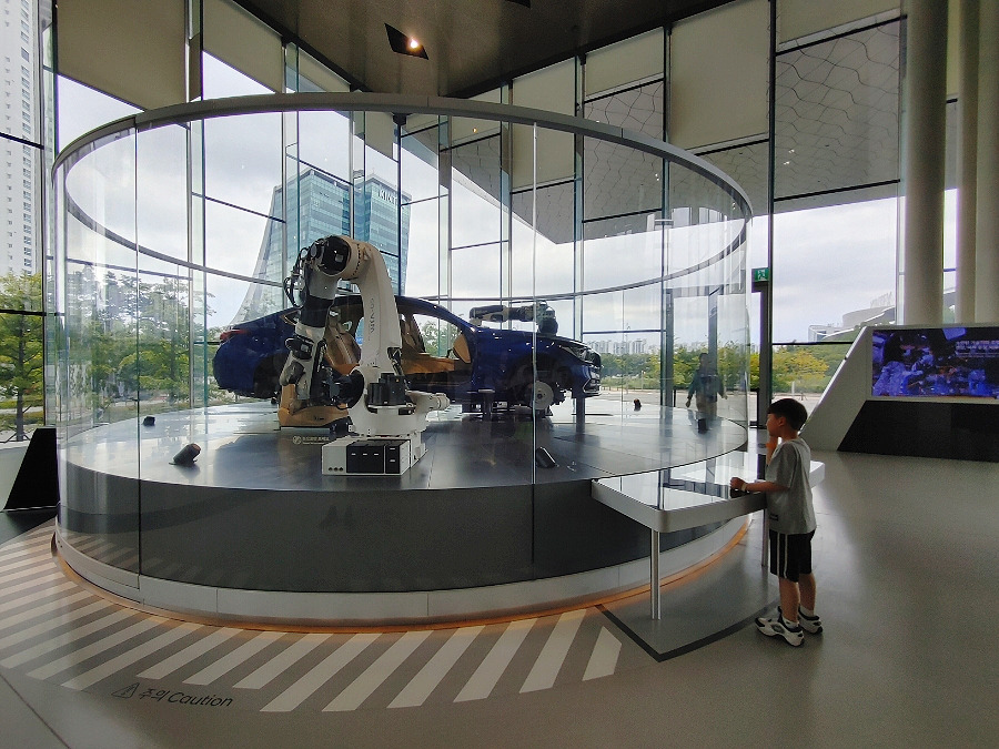 현대 모터스튜디오는 외국인 관람객을 위해 영어, 중국어로도 가이드 설명을 제공하고 있다. 여기선 가이드를 '구루'라고 하는데 상설 관람을 마치고 1층에서 차량 체험을 하다보니 외국인 구루가 국제 학교 어린이들에게 영어로 설명을 하고 있었다. 글로벌 기업답게 관람객을 위한 세심한 배려가 눈에 띈다. 이 곳에서 미래의 모빌리티 환경을 선두해 갈 현대 자동차의 비전을 엿볼 수 있었고 아이들에겐 미래에 대한 가능성과 상상의 날개를 펼쳐 줄 좋은 체험이었다.