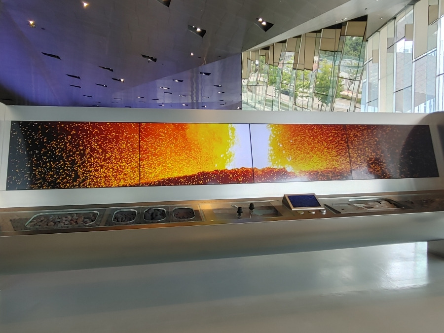 음악과 영상에 맞춰 쇠막대가 솟아오르며 이미지를 구현한다. 기술과 음악, 영상의 조화가 환상적이다. 끝난 후에도 여운이 오랫동안 남는 아름다운 전시였다.