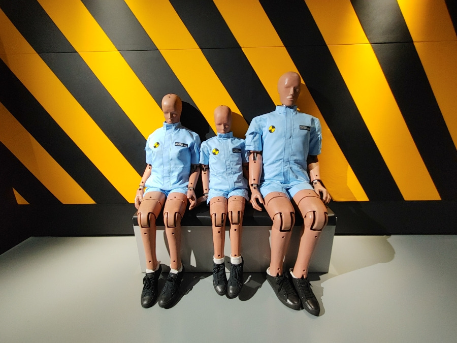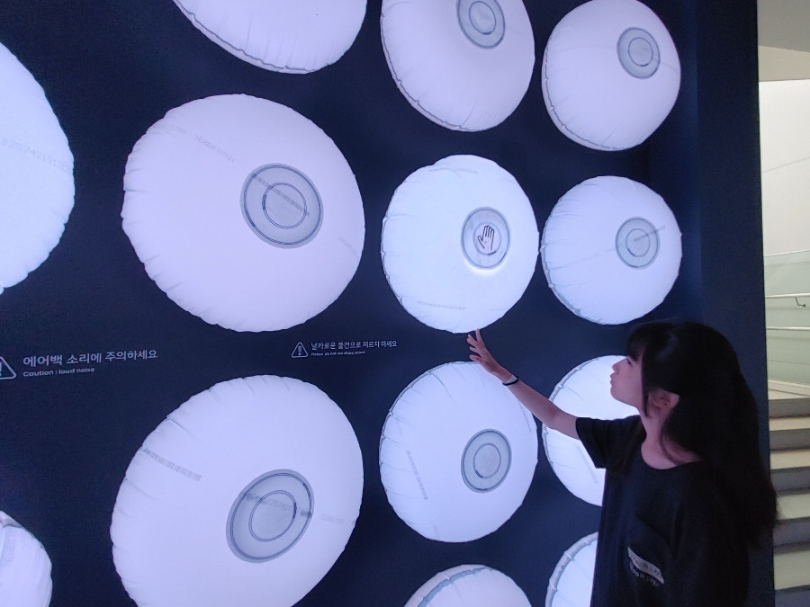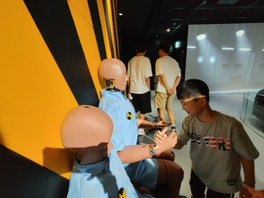 자동차의 내부의 에어백 위치와 충돌 시 어떻게 부풀어 올라 탑승자를 보호하는지에 대한 설명을 듣는다. 손바닥 마크가 있는 에어백에 손을 갖다 대면 저절로 바람이 빠진다.