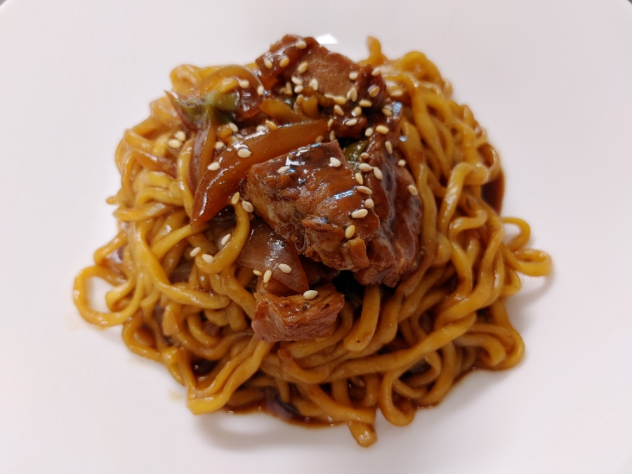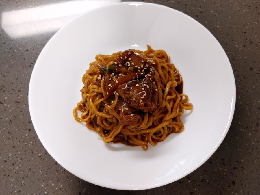 어우~ 맛있겠다~ 제가 만들고 있어도 침 넘어가요. 짜장 스프 2개 넣었지만 고기가 푸짐해서 간이 좀 부족한 느낌이에요. 집에 남는 짜장 스프 1개 있길래 반 개 더 넣어줬습니다.