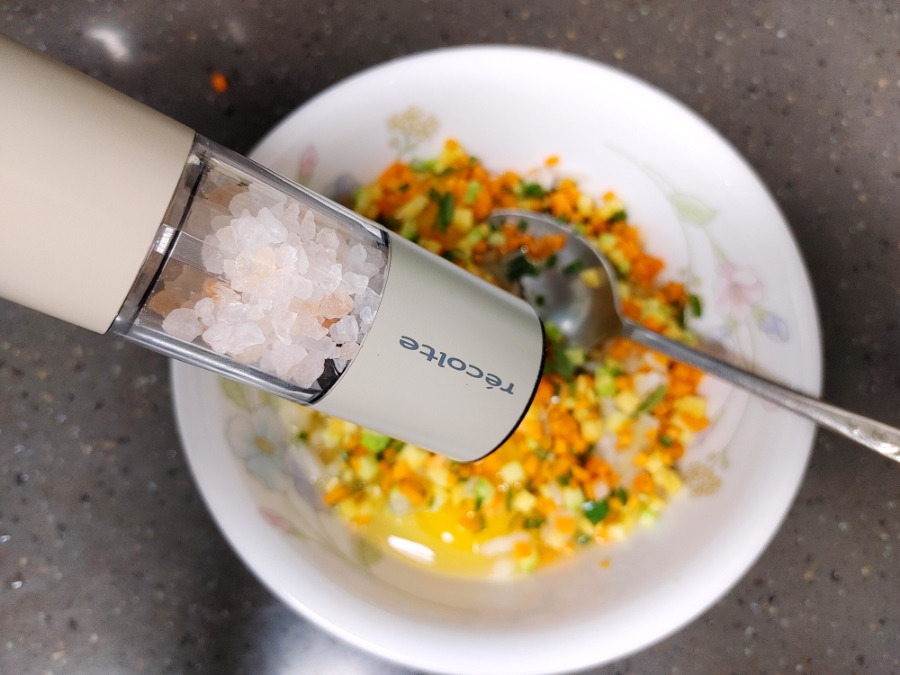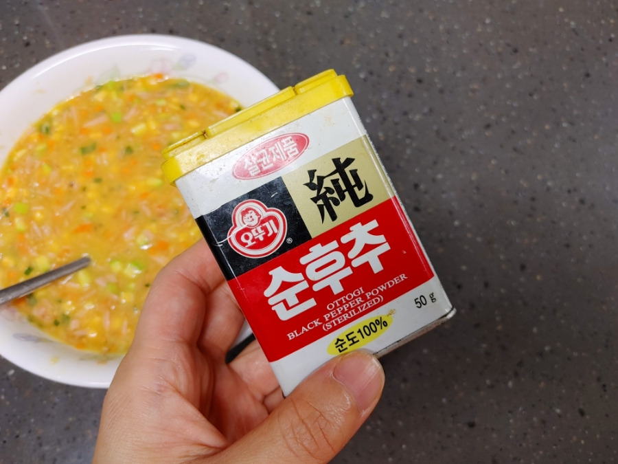 소금 약간 넣어줄게요. 참치에 간이 되어 있기 때문에 소금을 너무 많이 넣을 필요 없어요.