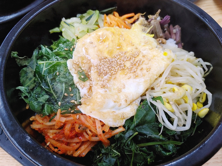돌솥비빔밥 구성을 보세요. 비빔밥 야채가 6가지 정도 돼요. 집에선 이렇게 다양한 야채로 비빔밥 해먹기가 쉽지 않잖아요. 이 한 그릇에 맛과 영양, 정성이 고스란히 담겨있어요. 비빔밥은 정말 완벽한 한 그릇입니다.