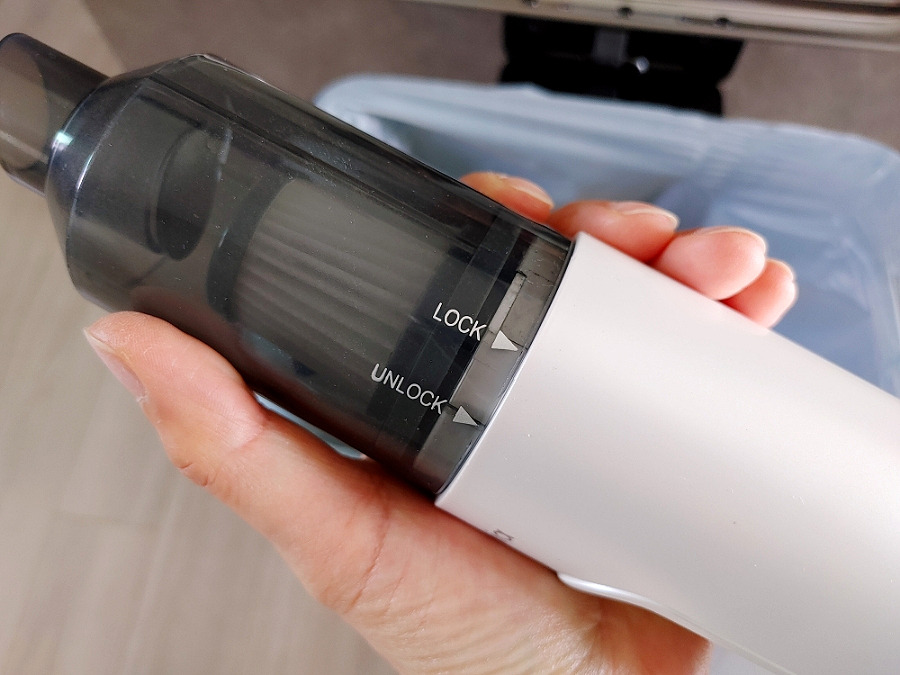 필터 분리하는 방법은 간단해요. LOCK에서 UNLOCK 방향으로 본체를 돌리면 흡입구와 본체가 분리됩니다.