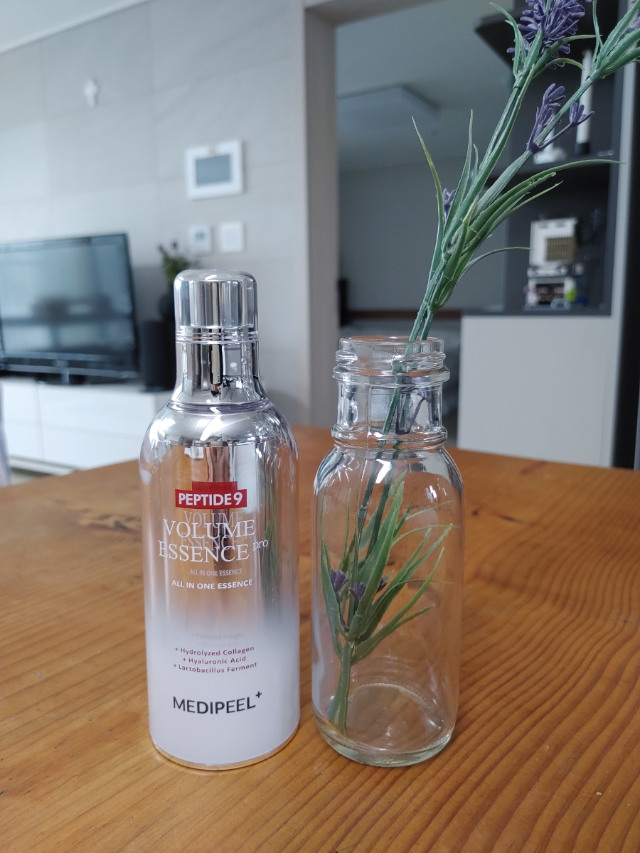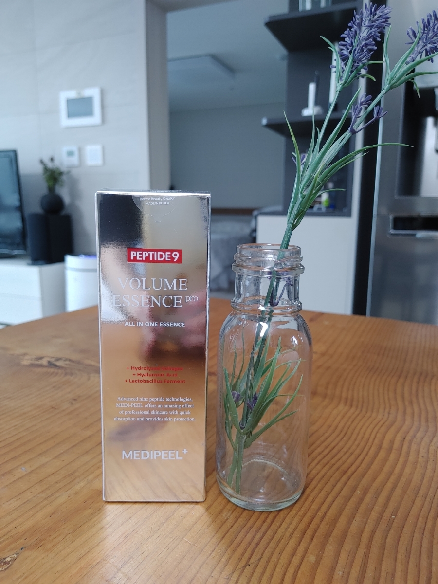'메디필 펩타이드9 볼륨에센스 프로'는 히알루론산과 유산균 발효물을 함유하고 있는데 바른 후 은은한 광택감이 유지되면서 부드러운 피부결을 느낄 수 있어요. 유산균 발효물은 꾸준히 바르면 피부 장벽 재생과 건강에 도움이 된다고 알고 있어요.