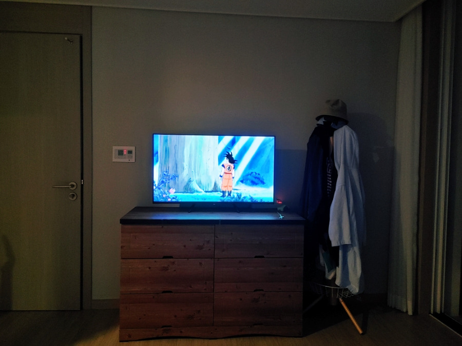 안방에서 드래곤볼 감상 중~ 초 1 어린이가 드래곤볼에 푹 빠졌다죠. 저 어렸을 적 추억의 만화인데.. 시대를 역행하고 있는 중입니다. 안방에 티비 한 대 놔두니 또 나름대로 괜찮네요. 애들 재우고 저 혼자 혼맥하면서 앱으로 영화나 드라마도 챙겨보고요.