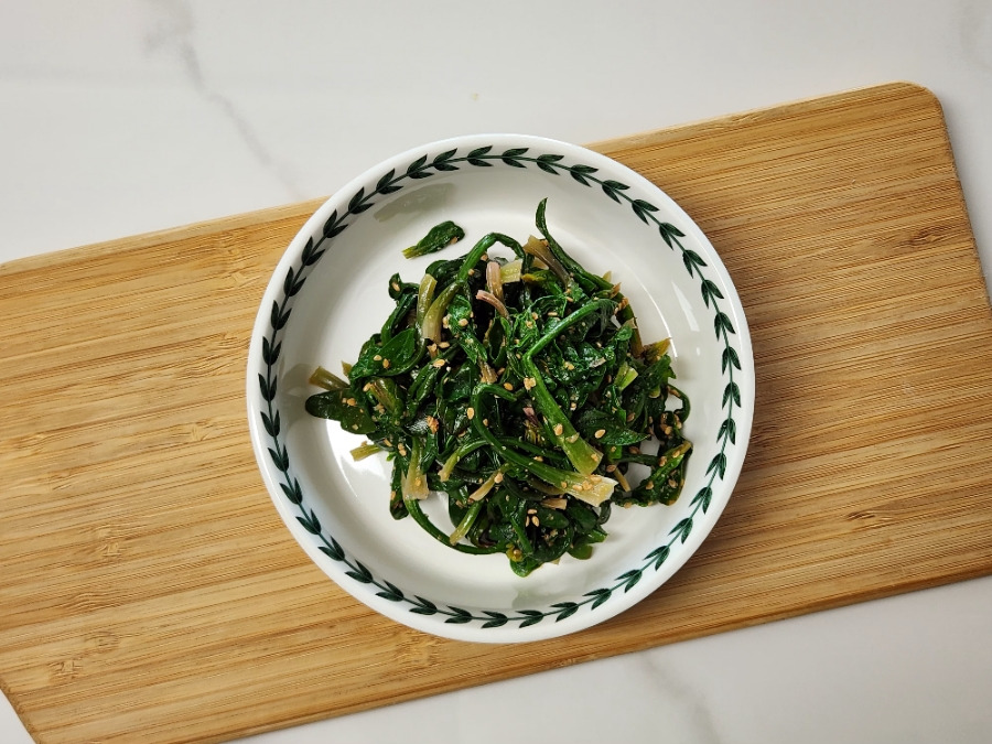 사찰식에서는 마늘, 파, 달래, 부추, 아위 이 다섯 가지 야채(오신채)를 양기를 붓고 감정 조절을 방해하는 야채라 하여 섭취를 금하고 있는데요. 기존의 저는 다진 마늘, 다진 파, 액젓을 이용해 시금치 양념을 했던 터라 이 재료를 빼고 나물 맛을 살릴 수 있을까 의아했어요.