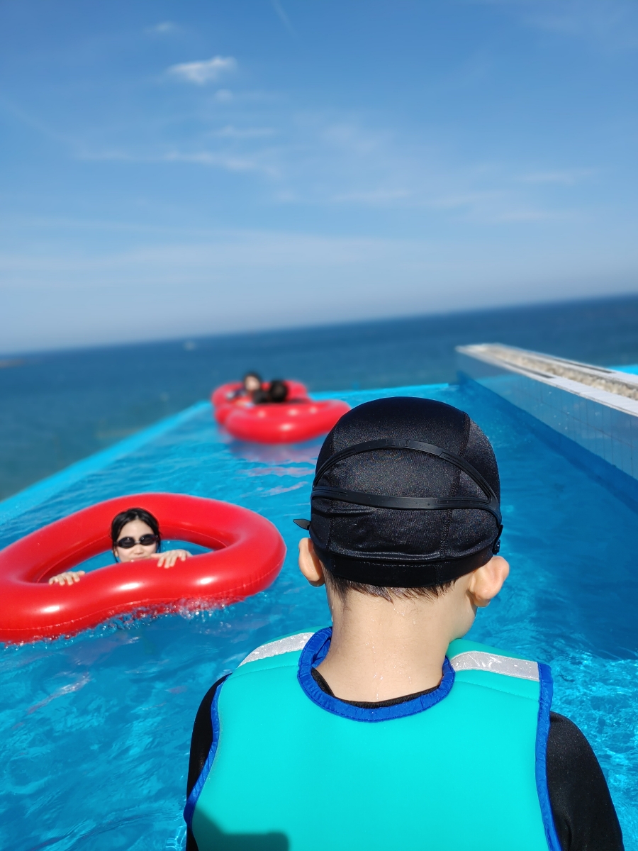 사이드풀은 미온수가 나와 따뜻하게 수영할 수 있어 아이들이 너무 좋아했다.