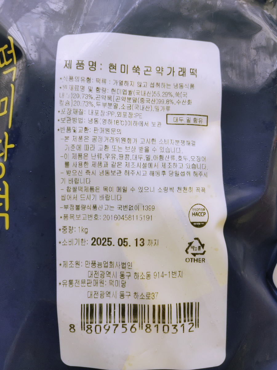 현미멥쌀과 쑥, 곤약묵이 주 성분이라