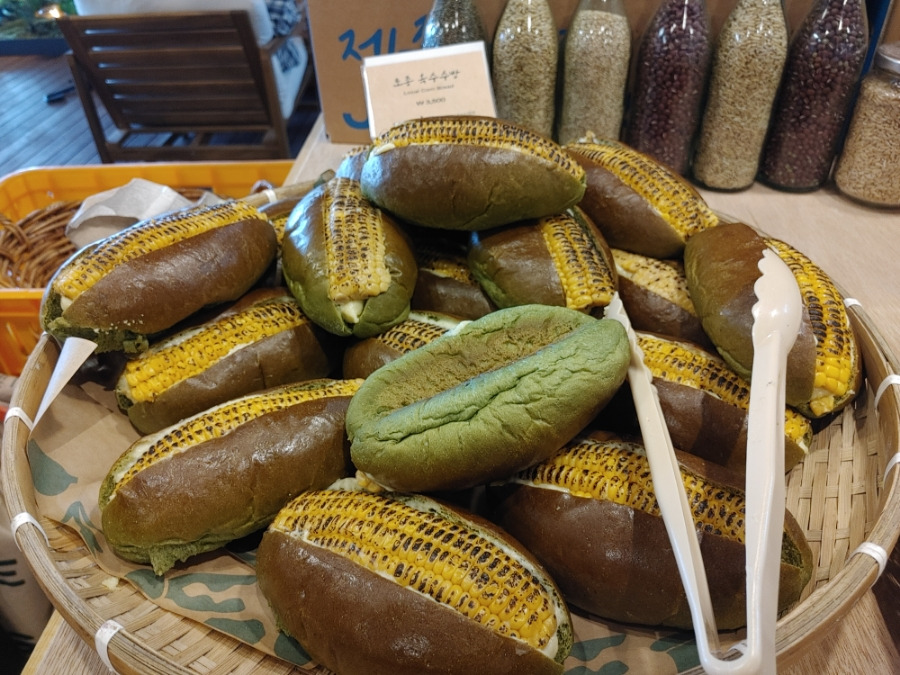토종 옥수수빵, 옥수수알의 씹히는 식감과 크림이 맛있다.
