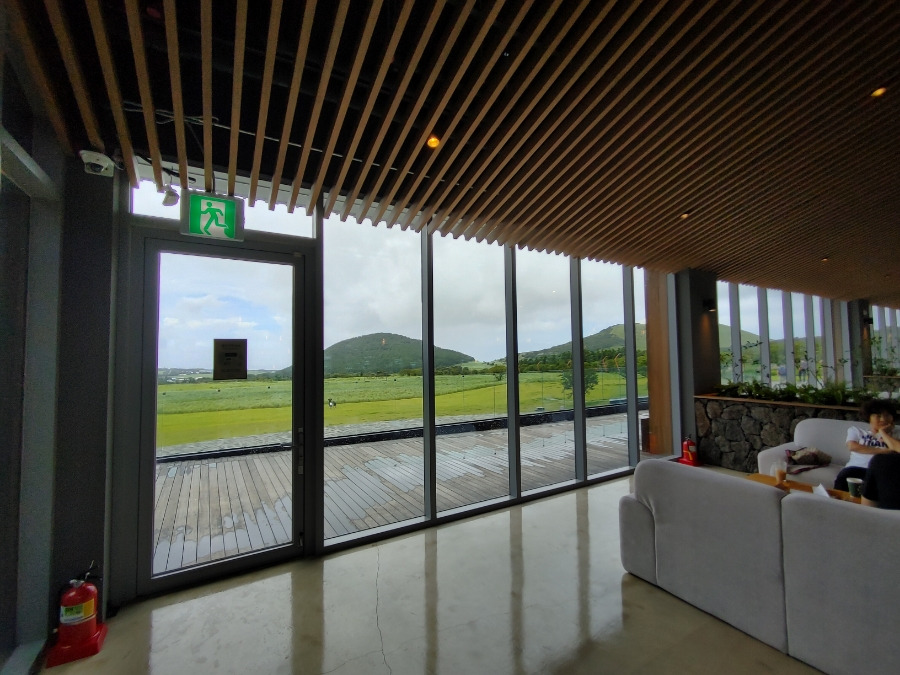 지평선처럼 낮고 길게 설계된 카페 지상층. 완만한 곡선의 미가 돋보인다.
