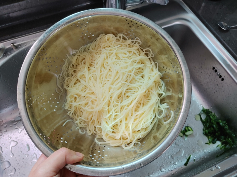 전분기를 없애줘야 면이 탱글탱글해요.