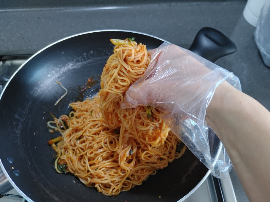 저는 국수 삶기와 양념장 넣고 비비는 걸