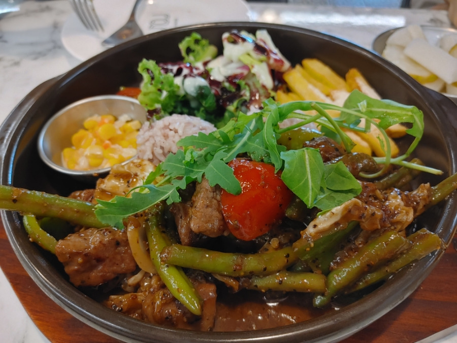 그린빈, 방울 토마토와 함께 볶은 스테이크와