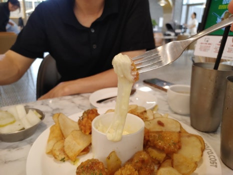 갓 나왔을 때 치즈를 쭉 들어올려 먹으면 진짜 맛있다.