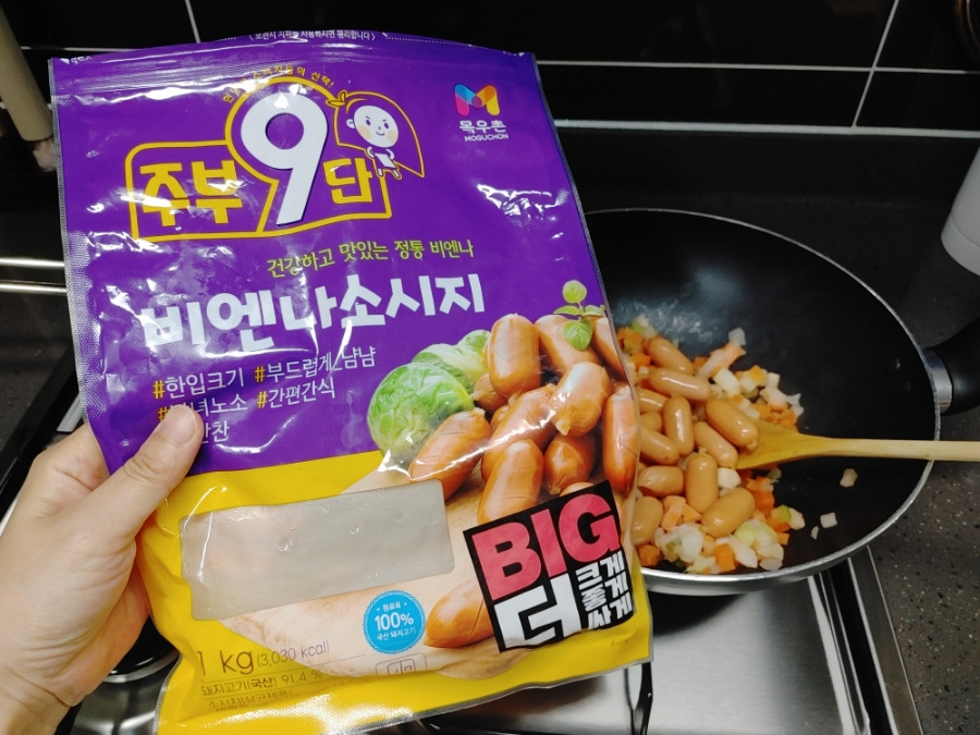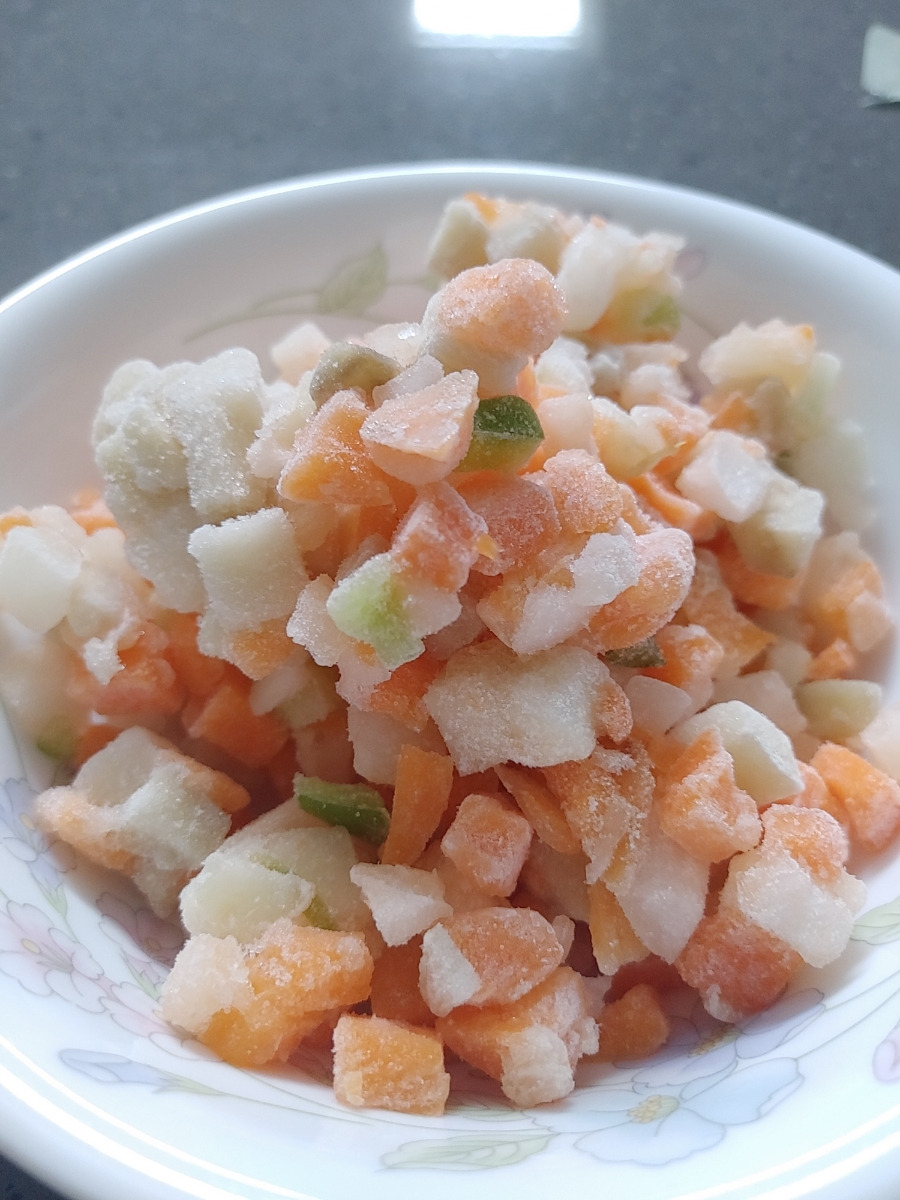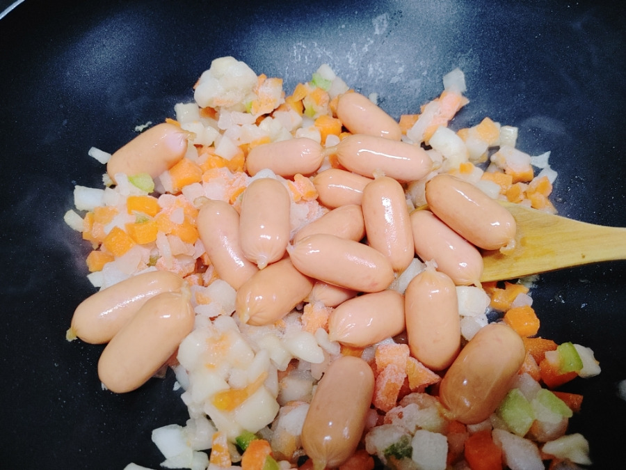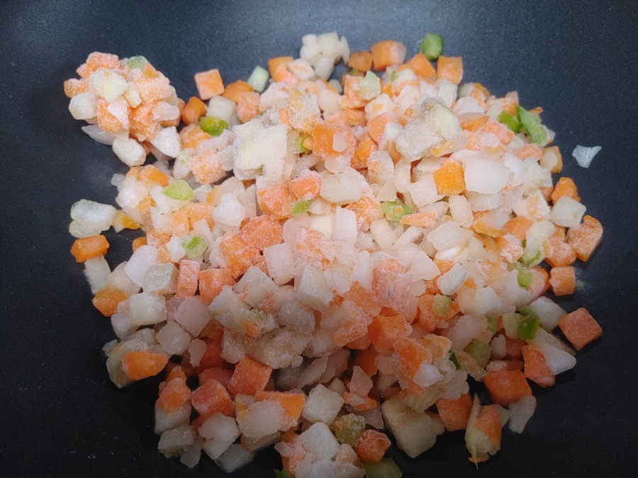 냉동 볶음밥용 채소를 넣고 잘 볶은 뒤