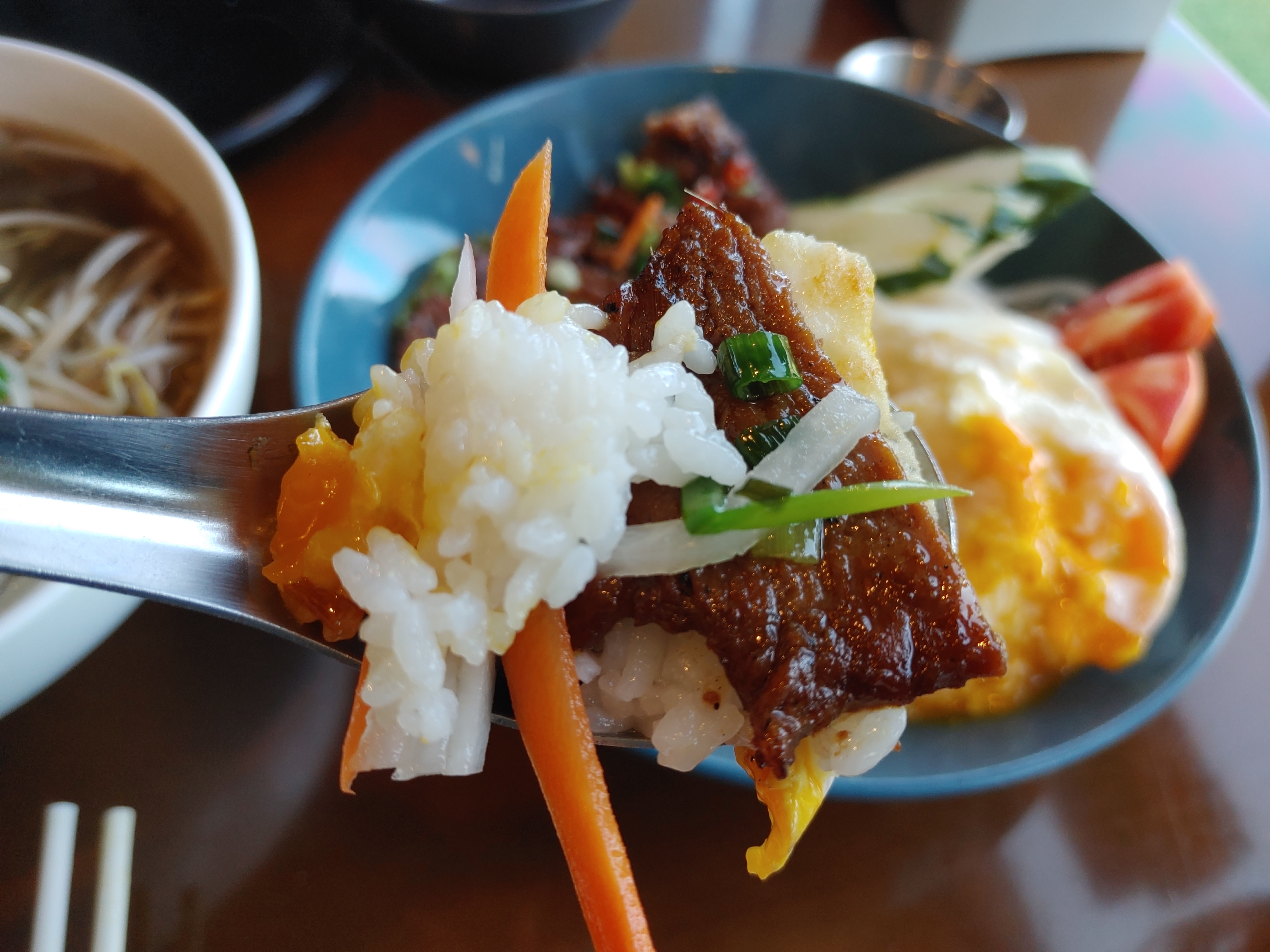 한 숟가락에 얹어서 먹으면