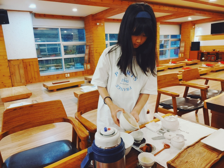 여행에서 돌아온 후, 집에 있던 다기를 꺼내 닦았다. 초1 막내 아들이 엄마, 아빠를 위해 차를 대접했는데 그 모습이 짐짓 의젓해서 흐뭇했다. 차가 우러나는 동안 아이와 담소를 나누며 화기애애한 분위기가 연출되었다.