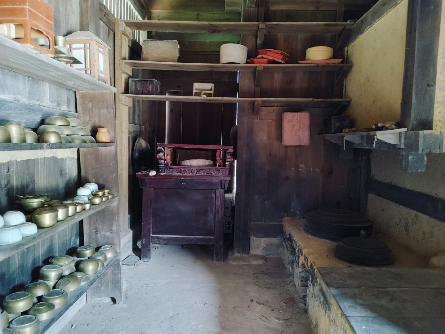 최참판댁 사랑채. 사랑채는 상전들, 즉 양반들이 기거하던 곳이었다. 사랑채 마루에 앉아 밖으로 펼쳐진 너른 평야를 바라보고 있노라니 최참판은 먹지 않아도 배가 불렀겠다 싶다. 평사리 높은 곳에 지어진 최참판댁은 지주 계급으로서 피라미드 구조의 최상단에 있었음을 상징적으로 보여주는 곳이다.