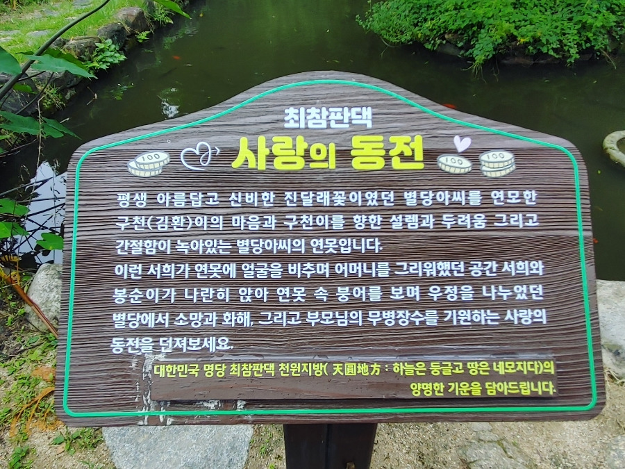 토지의 극중 주인공 별당아씨가 머물던 곳으로 별당아씨를 연모한 하인 구천이(김환)의 마음과 서희의 우정, 어머님에 대한 그리움이 담긴 곳이란다. 사진 속 두 개의 돌 바구니 안에 동전을 던지며 소망과 화해, 부모님의 무병장수를 기원해 보자.