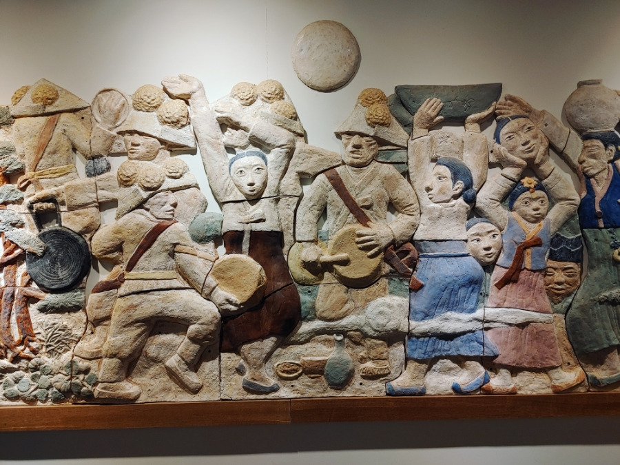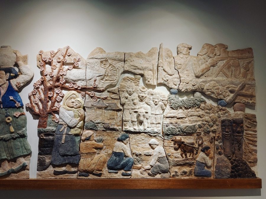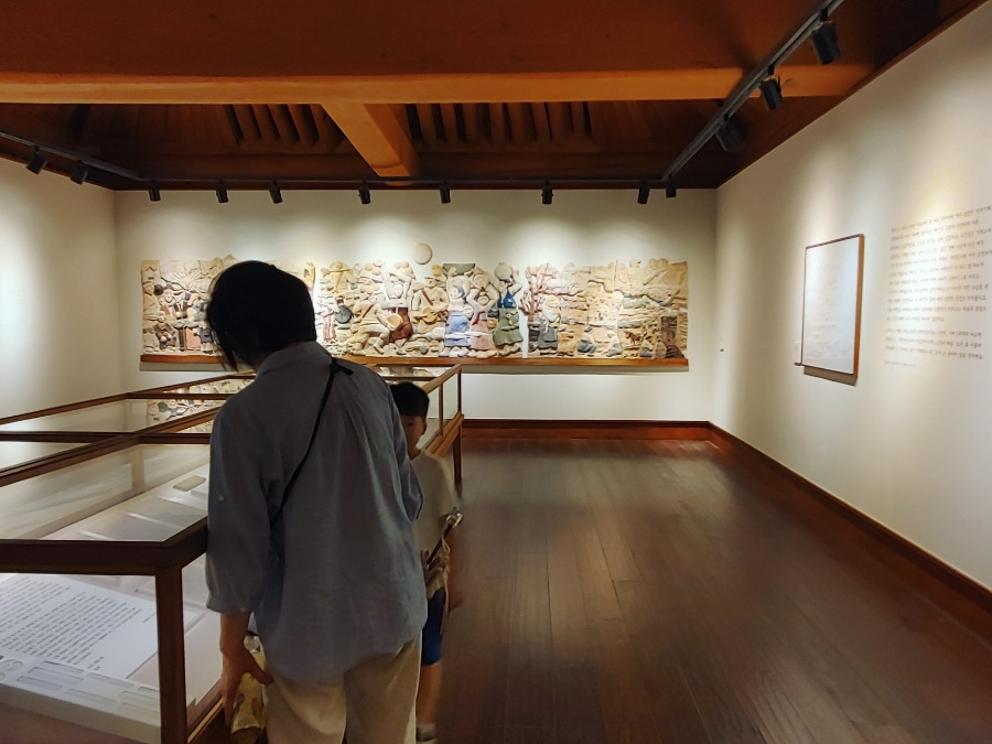 소설 <토지>의 사건과 시대별로 나뉘어진 3개의 대형 부조가 벽을 장식하고 있다.